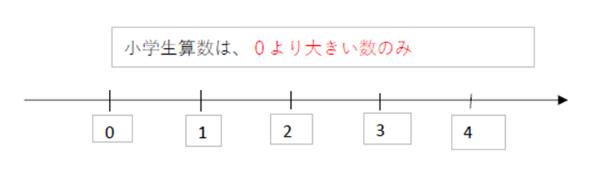 まず私たちは小学生までの算数だと、0より大きい数でしか数を扱っていなかったと思います。
