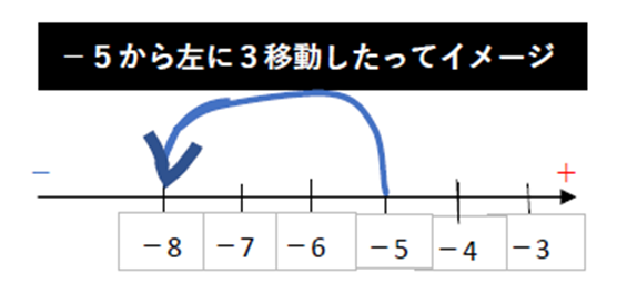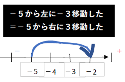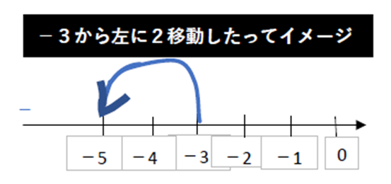 Ex③の式の通りに数直線上で動くと、スタート地点は-3です。そこから-2なので、左に(-(マイナス)方向に)2移動したというイメージになります。